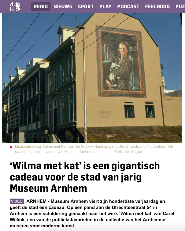 Wilma met Kat was een van de meest gedetailleerde reproducties die we ooit hebben geschilderd. Het werk bevat heel erg veel detail en is geschilderd op de zijgevel van een oud historisch pand. Een team van 5 kunstenaars is ruim twee weken met de uitvoer hiervan bezig geweest. Het origineel is te bezichtigen in het Museum Arnhem. Ook komt u het werk tegen als u vanaf Arnhem CS naar het Museum Arnhem loopt.